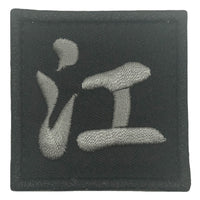 CHINESE SURNAME PATCH 江 JIANG - BLACK FOLIAGE - 3 cm x 3 cm