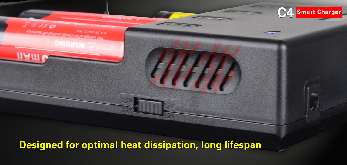 The Klarus C4 Smart Charger is the ultimate charging solution for virtually all cylindrical rechargeable batteries, including Li-ion, LiFePO4, Ni-MH, and Ni-Cd. Designed with integrated spring-tensioned battery holders, it accommodates a wide range of battery lengths, making it a must-have for anyone relying on rechargeable power sources.