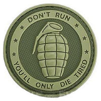 DON'T RUN YOU'LL ONLY DIE TIRED GRENADE PVC PATCH - GREEN