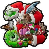 Special edition of our chameleon patch, made especially for Christmas. The Chameleon looks like Santa with his characteristic red and white coat, beard and the list of naughty and nice kids. He also carries numerous presents, sugar canes and a plate with milk and cookies in his paws.