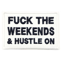 HUSTLE ON PATCH - WHITE WITH BLACK WORDS