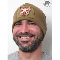 Based the Army Issue cold weather / watch cap and modified it to be a solid patch platform. These are quality comfortable caps that are 100% synthetic, microfleece, no-pill POLARTEC 100.