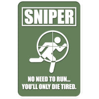 Sniper "No need to run you'll only die tired" Velcro PVC morale patch, with hook fastener back