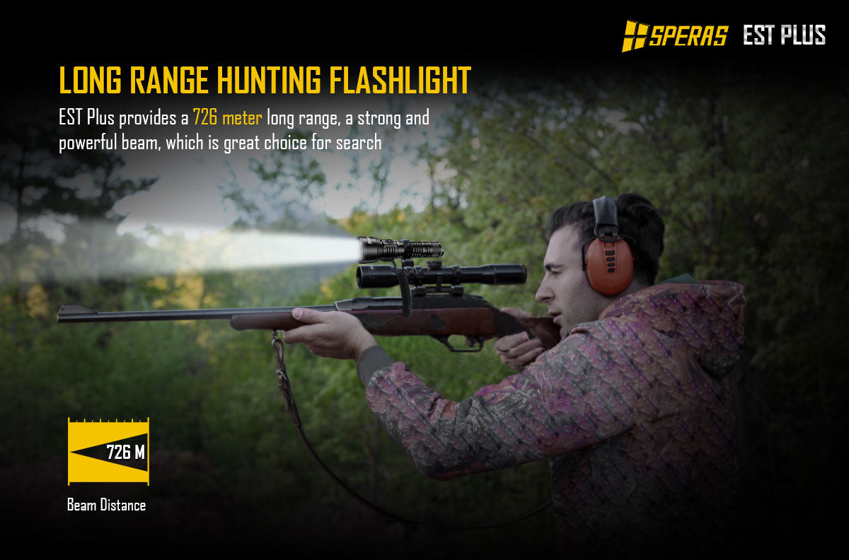 The EST PLUS is a new powerful flashlight that produces a maximum output of 1600 lumens, with a 726-meter throw, from its Luminus SFT40 LED and advanced driver. Building on the classic features of EST, the sturdy and classic appearance of the EST PLUS includes a very user-friendly interface with a tail button and a side button. It supports USB-C for fast charging reaching a full charge within 4.3 hours. Powered by a single 18650 3800mAh battery, it provides a long run time of up to 140H. With unbeatable performance and a durable build, the EST PLUS is the preferred choice for hunting, search and rescue, police duty, outdoor activities like camping, etc.