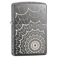 A Zippo Lighter with a translucent powdercoat black ice finish, classic size case, finished with a Web All Over design. This lighter requires fluid fuel. The lighter is supplied un-fueled for safety during shipping.
