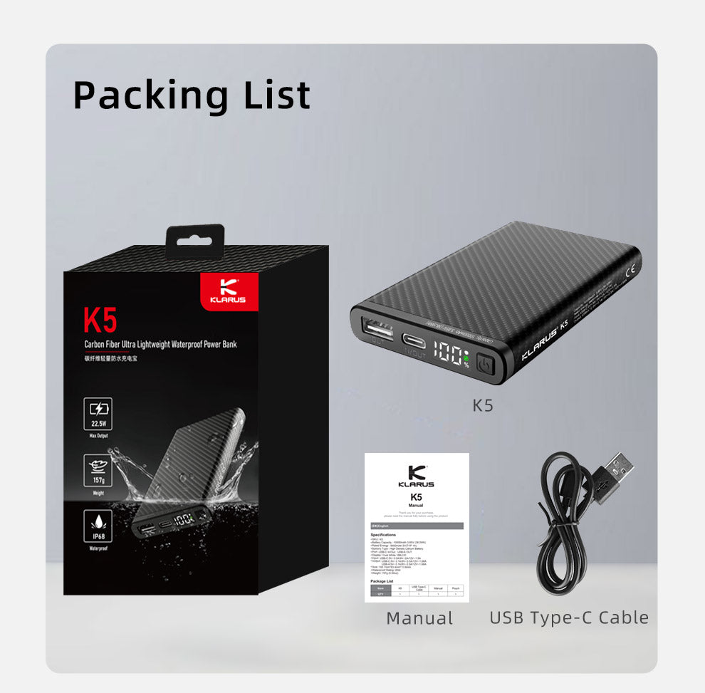 13.6mm Carbon Fiber wrapped body at only 157g, upto 30% lighter than other powerbanks on the market; with 105.7mm in height, it takes no space in the pack. Designed especially for ultralight hiking, mountaineering, and other outdoor excursions.