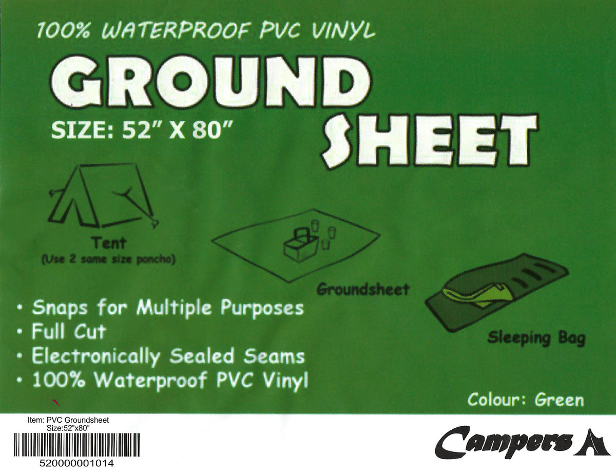 Item: Ground Sheet (PVC)Weight: 500gDimension: 52″ x 80”Material: Waterproof PVCColor: Olive GreenRemarks: Also Commonly used as a Tent Shelter & Sleeping Bag