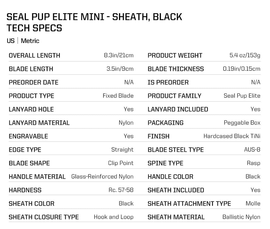 Inform when this item available SOG SEAL PUP ELITE MINI FIXED BLADE KNIFE (E37M-BX)