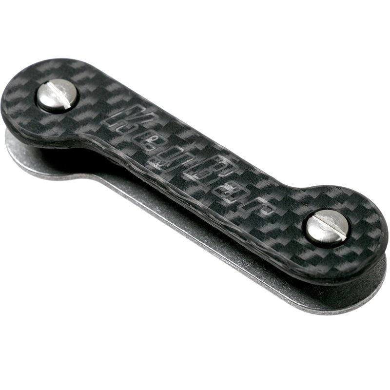The KeyBar is the original pocket organization tool designed to securely hold all your keys in one compact, rattle-free package. The Carbon Fiber/Titanium KeyBar model is great for those who want ultimate strength and elegance. All KeyBars are CNC milled from a solid billet then hand finished to order. Every KeyBar is 100% non-ferrous and all hardware is stainless steel so your KeyBar will not rust. No special tools are necessary for assembly. Patented design, manufactured in Savannah, GA.