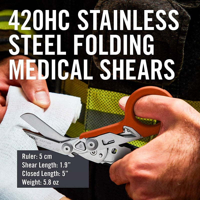 The Leatherman Raptor shears features the necessary tools for uniformed response professionals to safely and quickly go to work in an emergency situation. Developed with the input of special operations medics, EMTs and fire professionals familiar with standard shears, the Raptor shears were crafted with just the right balance of multipurpose features for emergency response without an overkill of tools to complicate sometimes life-threatening situations. When it's a question of survival, the Raptor answers loud and clear. Holster included. Commonly used as: emergency response shears, industrial shears, fabric shears, kitchen shears, garden shears.