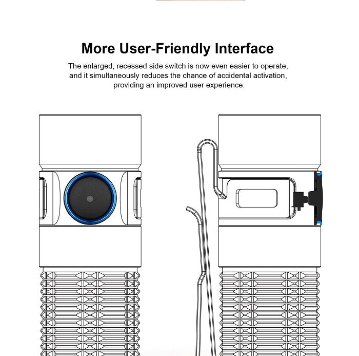 More User-friendly Interface: The enlarged and recessed side switch is now even easier to operate while simultaneously reducing the chance of accidental activation, providing an improved user experience