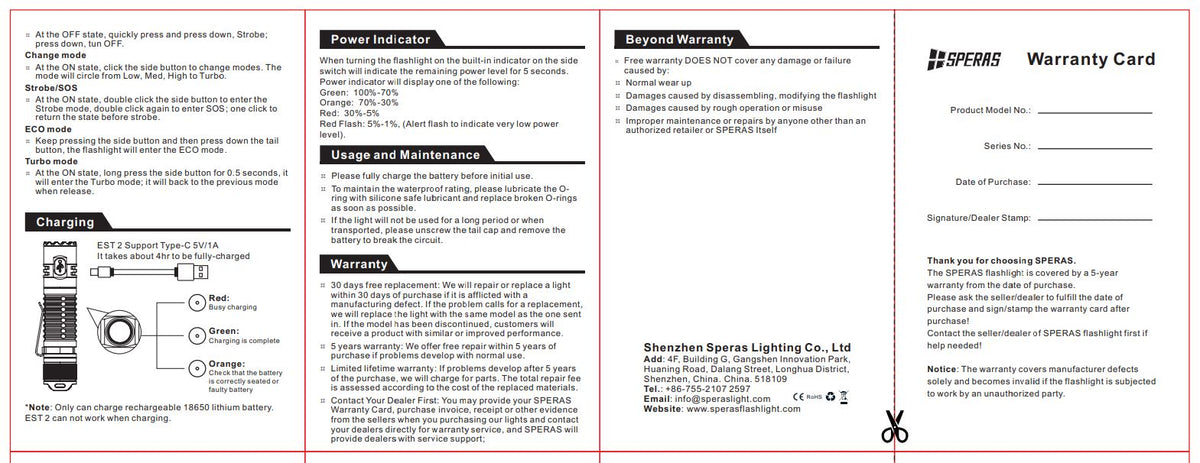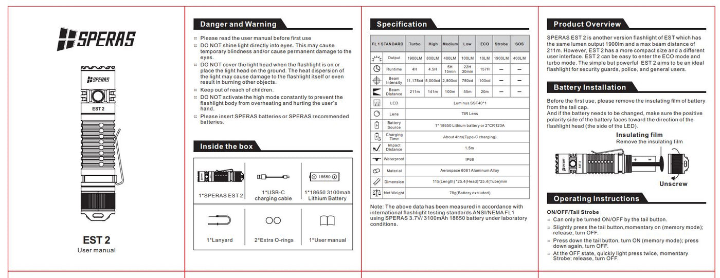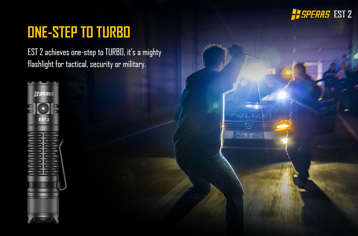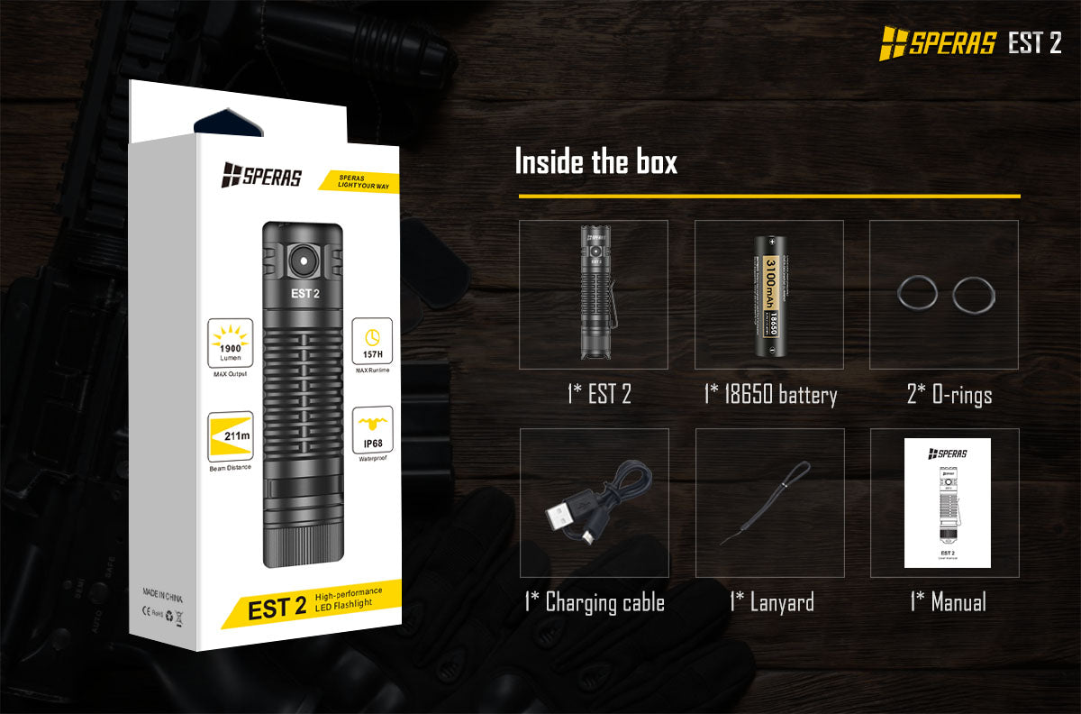 SPERAS EST2, USB-C RECHARGEABLE TACTICAL FLASHLIGHT 1900 LUMENS, 1 x 18350 (BLACK)