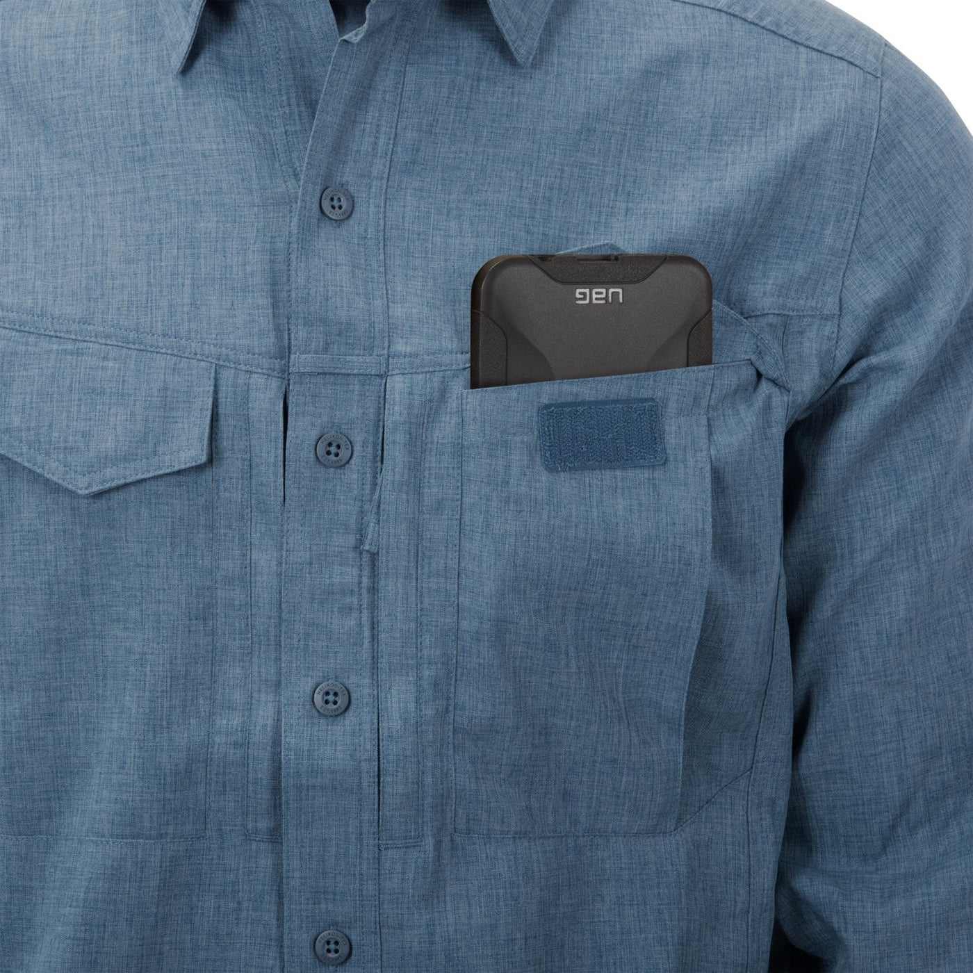 Classic shirts are one of the most appreciate types of clothing, that are more and more popular not only at official events, but also in everyday use. Our Defender Mk2 Gentleman Shirt is the type of shirt that will be perfect as a part of your suit, as well as they will look great together with denim pants. Made of lightweight, elastic polyester fabric. This quick-drying fabric provides a great breathability, while UPF30 index gives you a proper UV protection. The overall cut of the shirt is the same as in our classic Defender Mk2 shirts. The shirt is buttoned with the subtly Helikon-Tex® branded buttons. On the chest there are two flapped pockets closed with hook&loop tapes. Under them, there are additional flat pockets closed with YKK® zippers. Elegant look of the shirt will make it a great choice for every occasion.