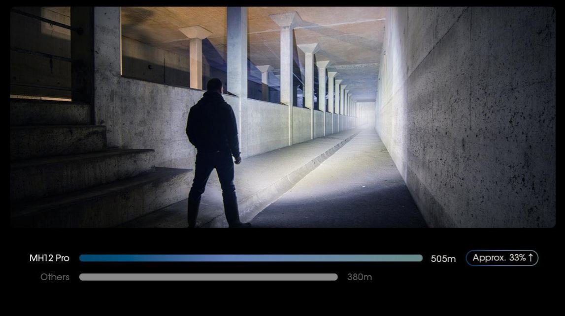 Similarly, the MH12 PRO doesn’t just provide a bright 3300 lumens; it also focuses this output into a powerful beam with over 63,500 candela, making it an optimal choice for precision tasks and defensive use at a distance.