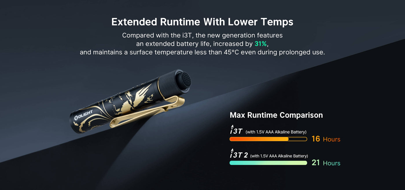 OLIGHT I3T 2 EOS DUAL OUTPUT SLIM EDC FLASHLIGHT (BATTERY INCLUDED) - 200 LUMENS - BLACK