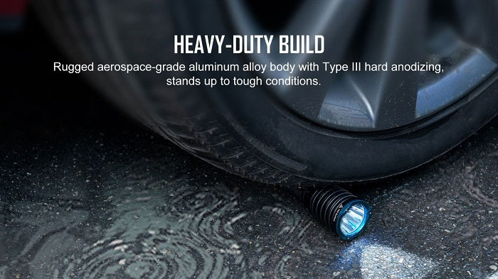 Reliable Build: Aerospace-grade aluminum alloy body with hard coat anodizing (Type III), non-slip knurling, and 3mm tempered glass lens. It is resistant to 2-meter drops and rated IPX8 waterproof