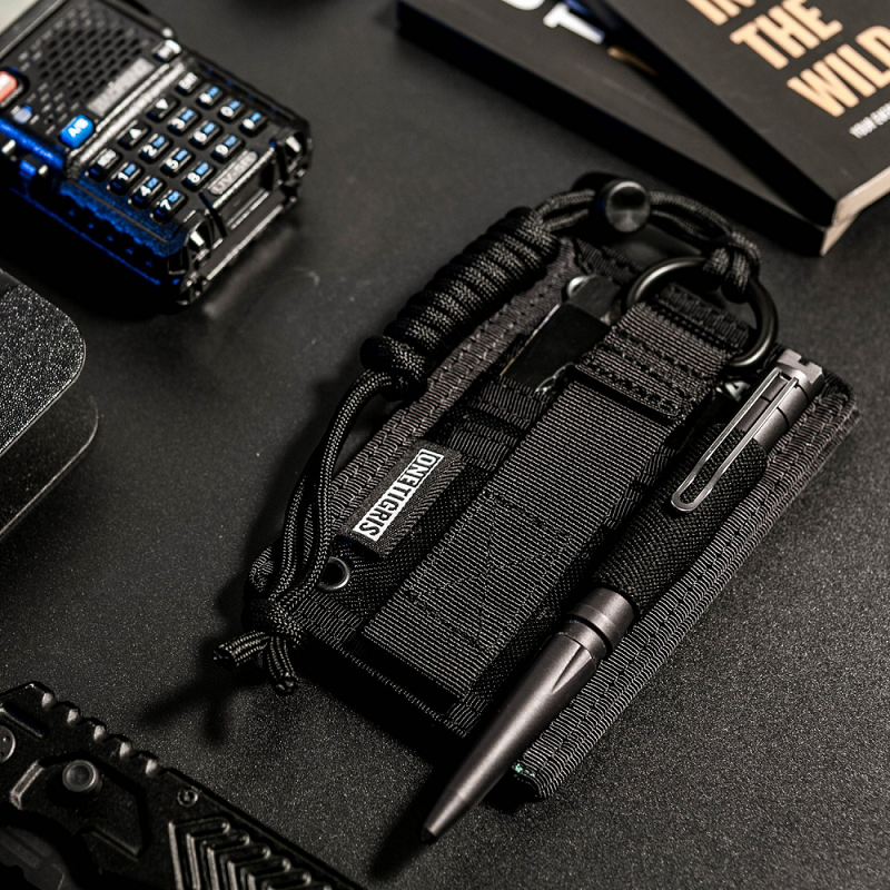 This is one tactical EDC wallet you cannot miss. It is a clear badge holder with wallet like pockets to store and organize the rest of your cards, can be worn horizontally or vertically, holds a pen, hard to be pick-pocketed, and the rear card holder can be torn off and attached to your vest or bag.
