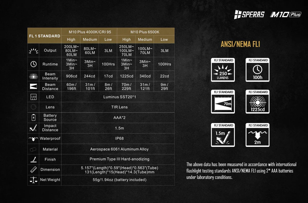 - 1 x M10 Plus 4000K CRI>95 flashlight